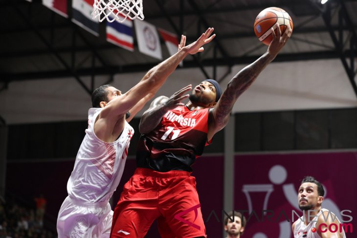 Pemain Basket Indonesia, Jamarr Andre Johnson (kanan) melakukan Lay-up saat menghadapi Suriah dipertandingan Babak Klasifikasi Asian Games ke 18 di Hall Basket Senayan, Jakarta Selasa (28/8/2018). (ANTARA FOTO/INASGOC/Bobby Arifin)