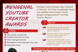 Sebagai media berbagi video terbesar di Internet, YouTube menghargai upaya dan dedikasi para kreator konten dengan menganugerahi YouTube Creator Awards.Sumber: https://www.antaranews.com/infografis/829998/mengenal-youtube-creator-awards